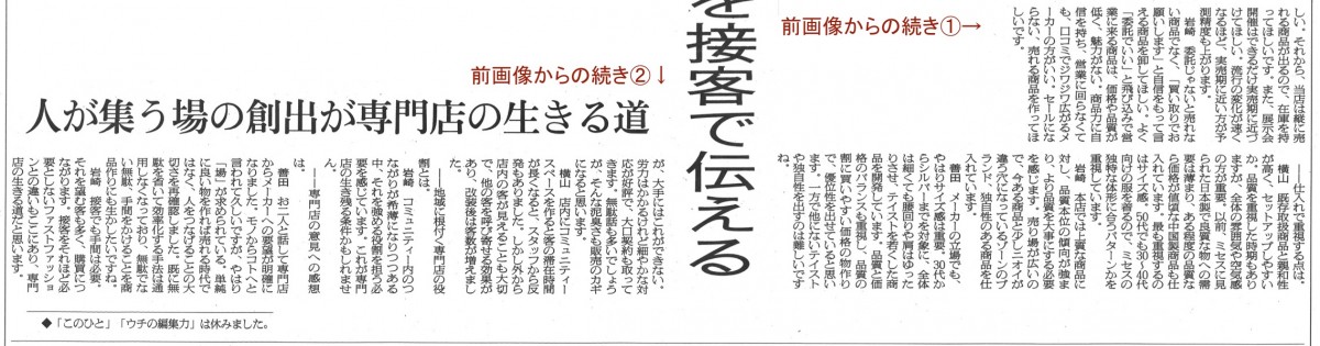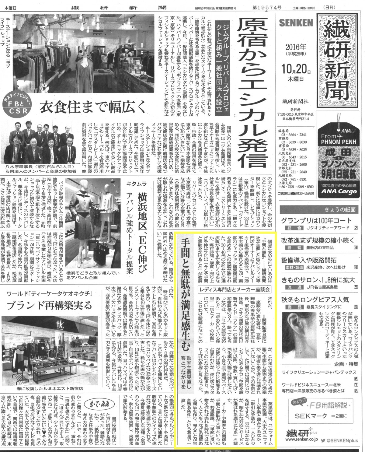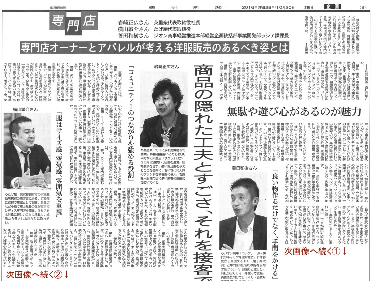 繊研新聞 2016/10/20(木)8面 専門店の頁