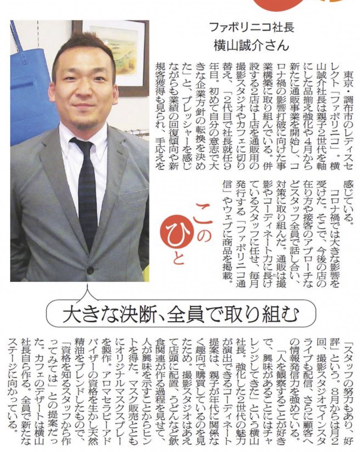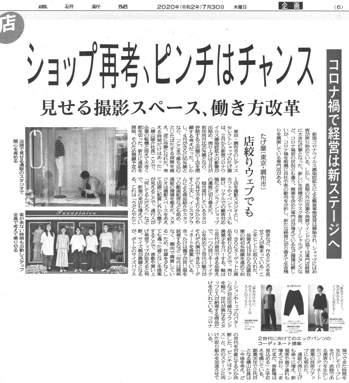 コロナ禍での弊社の取り組みが繊研新聞に取り上げられました。
